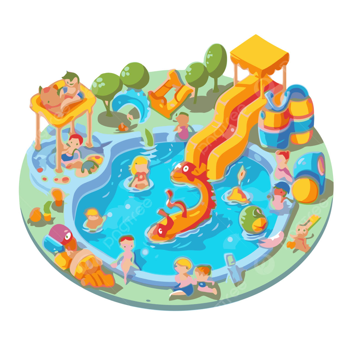 Kids Play Pool With Water Slides